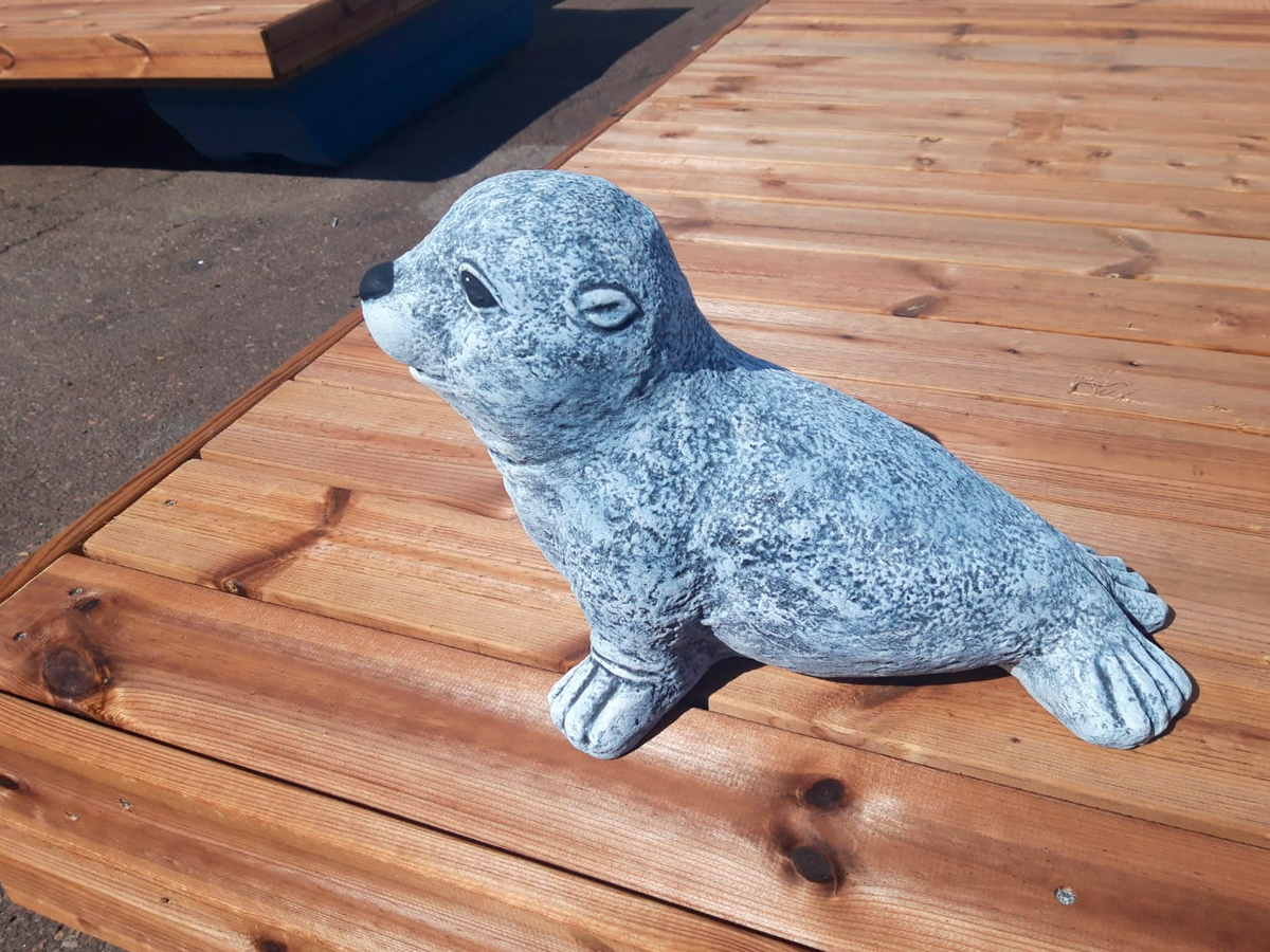 Norppa-patsas on näyttävä ja säänkestävä betonikoriste pihaan, laiturille tai mökille. 7 kg painoinen patsas seisoo tukevasti paikoillaan ja tuo ripauksen suomalaista luontoa ympäristöönsä.